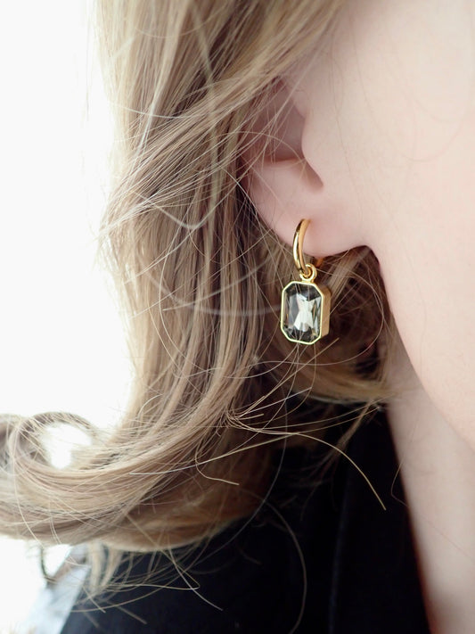 Natalia Emerald Cut Clear Crystal Hoop Earrings