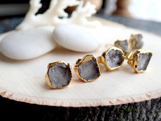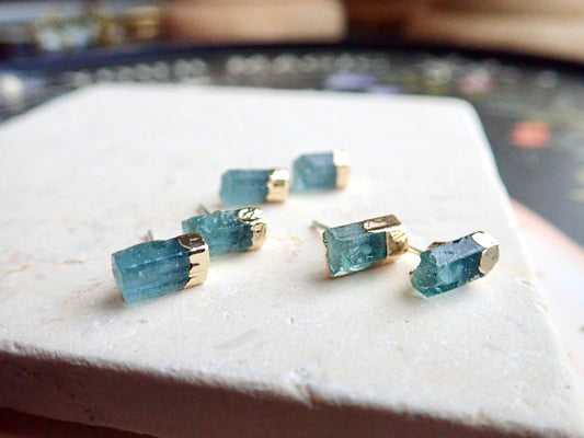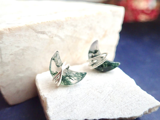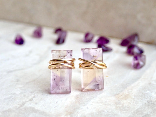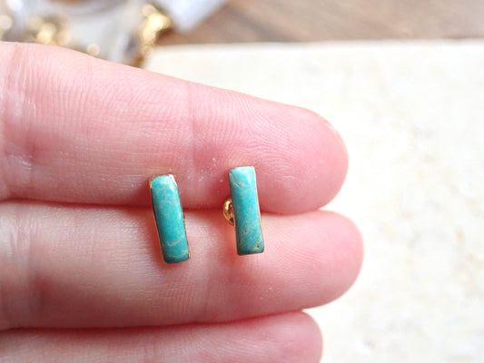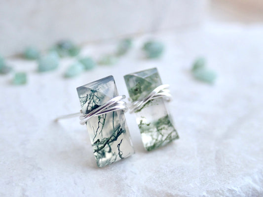 Genuine Prehnite Baguette Cut Stud Earrings | Sterling Silver or 14k Gold Filled