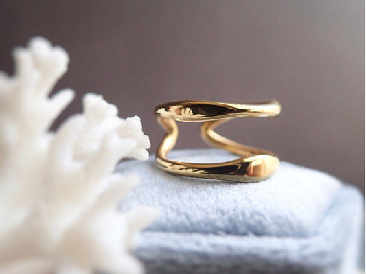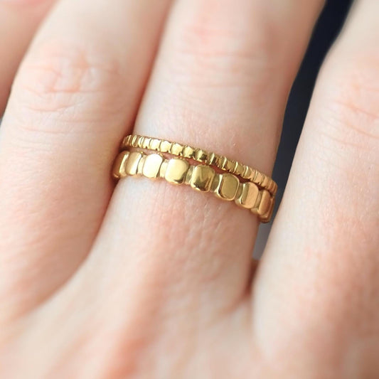 18k Gold Double Gold Band Ring - Minimalist WATERPROOF Jewelry, No Tarnish Statement Stacking Ring, PVD Stainless Steel