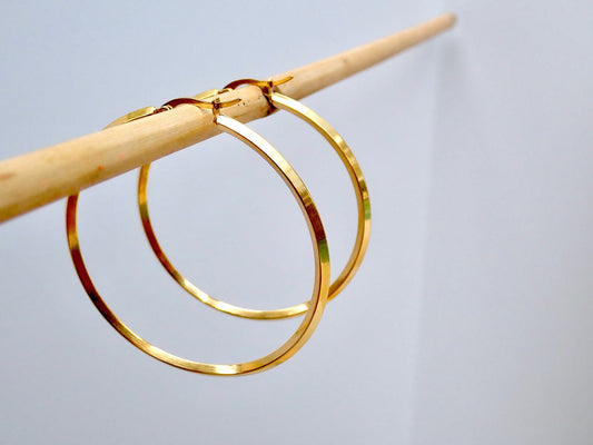 18K Gold No Tarnish Large Bevelled Hoop Earrings - PVD Stainless Steel Waterproof Jewelry, Perfect Everyday Hoops