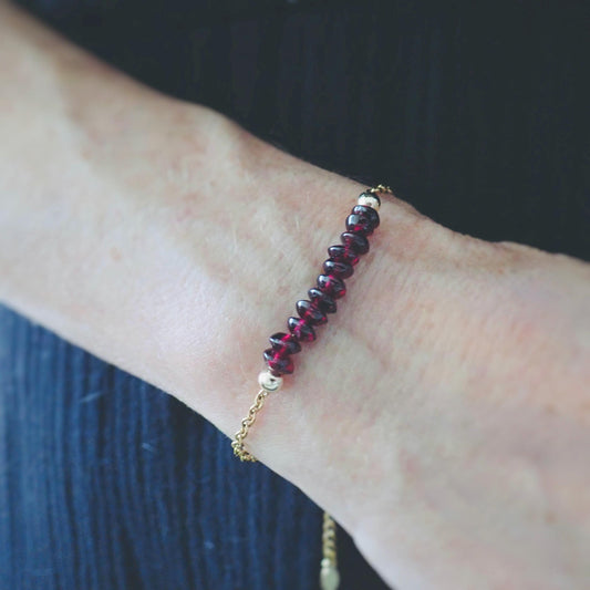 18k Gold Bracelet with Garnet Gemstones - Waterproof & Tarnish-Proof Jewelry