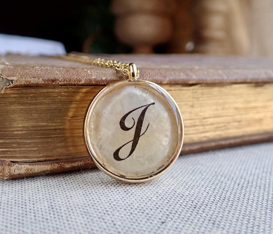18k Gold Filled Initial Necklace - Mother of Pearl Custom Letter Necklace - Capiz Shell Pendant Necklace
