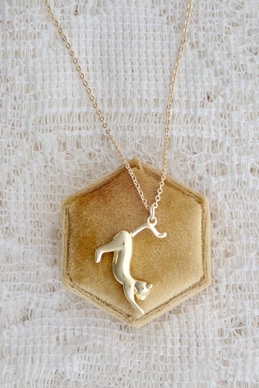 18k Gold Fill Cat Necklace – Playful Kitten Pendant, Whimsical Animal Lover Jewelry