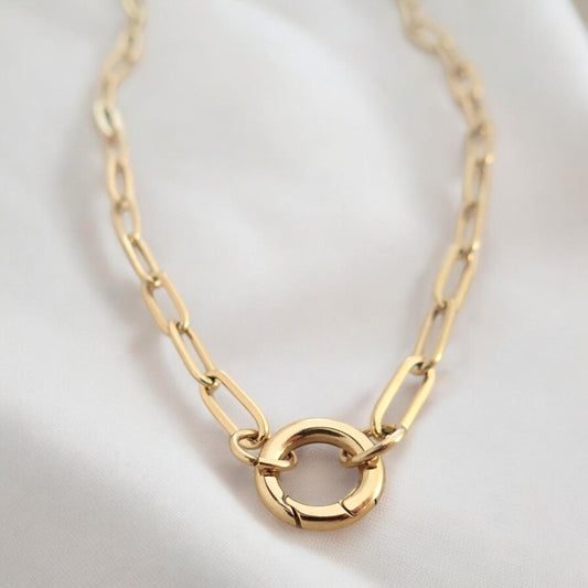 18K Gold Custom Charm Carabiner Necklace, Paperclip Add on Charm Keeper Necklace, Charm Holder Necklace, Personalized Charm Necklace Gift