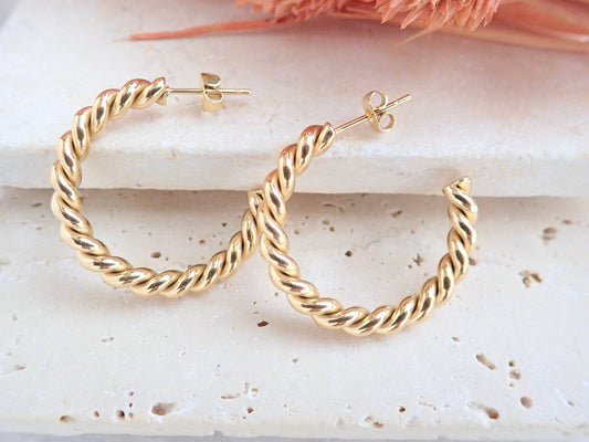 18k Gold Twisted Hoop Earrings – Tarnish Proof & Waterproof Jewelry | Gold Fill over Stainless Steel