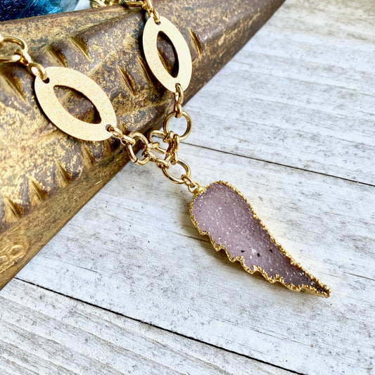 Druzy Angel Wing Necklace