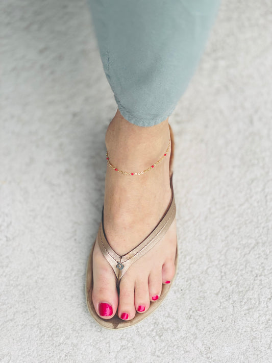 Gobi Red Enamel 14k Gold Ankle Bracelet