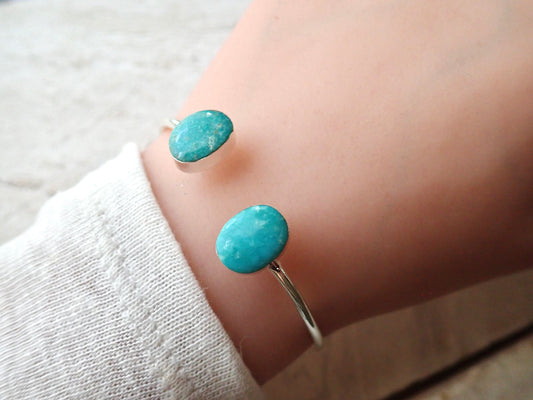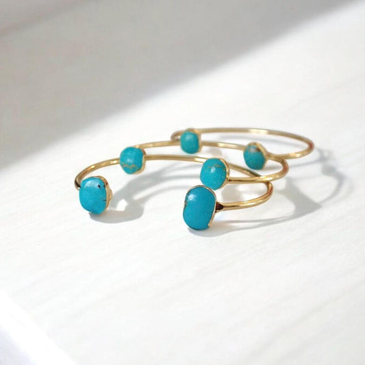 Genuine Turquoise Open Cuff Bracelet – 14k Gold Plated Adjustable Boho Bracelet | December Birthstone Jewelry