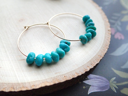 Genuine Turquoise Earrings, Turquoise Earrings ,Turquoise Hoop Earrings,Genuine Turquoise Earrings,Turquoise Beaded Hoops, Real Turquoise