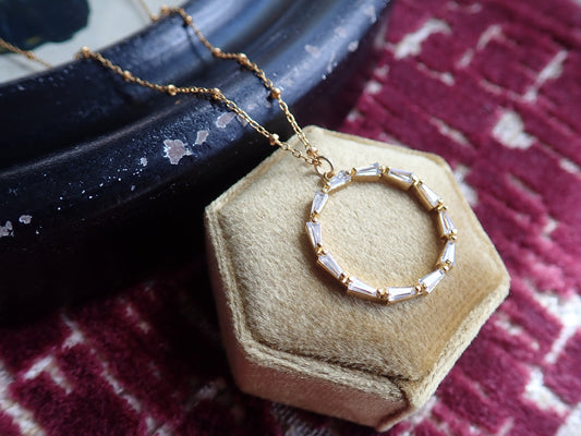 Gold Fill Eternity Necklace with Baguette Crystals, Halo Circle Pendant, Dainty Minimalist Jewelry, Gift for Her Everyday Elegant Gift