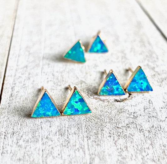 Giza Tiny Blue Opal Studs Earrings, Small Gemstone Posts, October Birthstone Jewelry