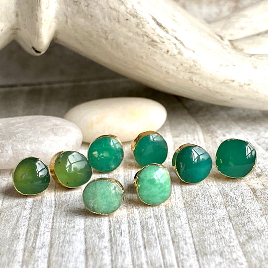 Large Emerald Stud Earrings, Mojave Gemstone Earrings, Statement Studs, May Birthstone Gift, Boho Gemstone Jewelry, Gift for Her