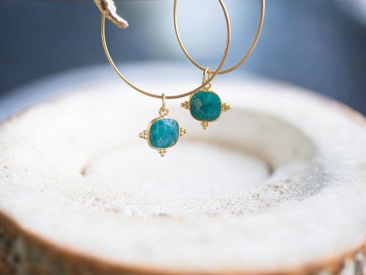 Large Gemstone Hoop Earrings Gold Vermeil, Birthstone Hoops, Emerald Ruby Sapphire Hoops, Big Boho Statement Hoops, Gift for Her