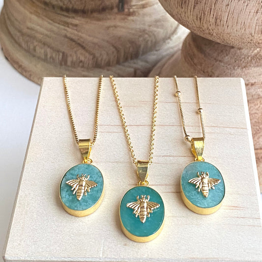 Amazonite Bee Pendant Necklace ,Handmade Jewelry Gift for Her, Gold Fill