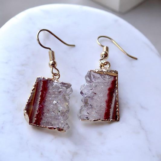 Amethyst Slice Earrings, Amethyst Stalactite Earrings, Gemstone Dangle Earrings, Amethyst Statement Jewelry,February Birthstone Gift for Her