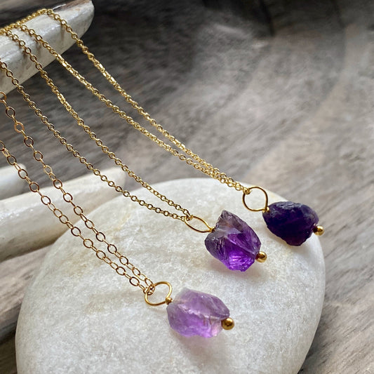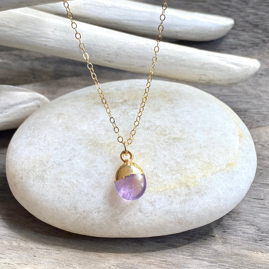 Amethyst Pendant Necklace, Crystal Necklace Gold, Amethyst Jewelry,Round Gemstone Pendant,February Birthstone Jewelry,Statement Gift for Her