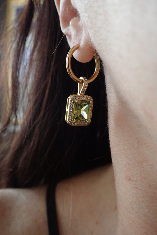 Ophelia Gemstone Hoops | Waterproof Earrings | 18K Gold Filled | Clear, Pink, Green | Cubic Zirconia | PVD Stainless Steel