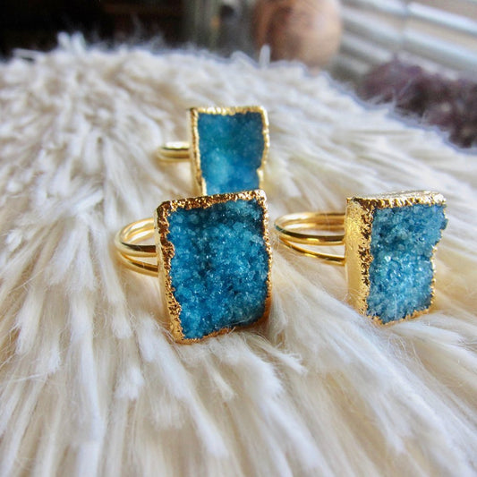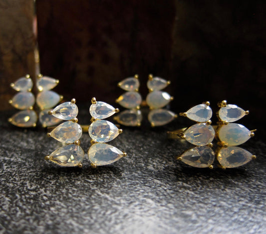 Open Moonstone Gemstone Ring Gold, Moonstone Jewelry, Gold Crystal Cocktail Ring, Adjustable Statement Ring for Women, June Birthstone Ring