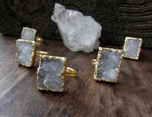 PinkTriangle Druzy Studs – Crystal Earrings with 14k Gold Electroplate