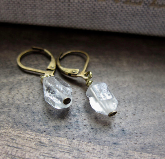 Prehnite Stud Earrings, Wire Wrapped Baguette Gemstone Studs, Rectangle Natural Raw Crystal Earrings,Dainty Silver Gold Jewelry Gift for Her
