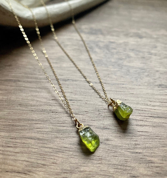 Positana Raw Peridot Pendant Necklace, Dainty Gemstone Jewelry, August Birthstone Gift for Her