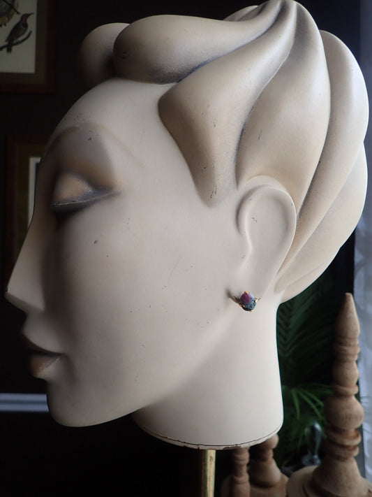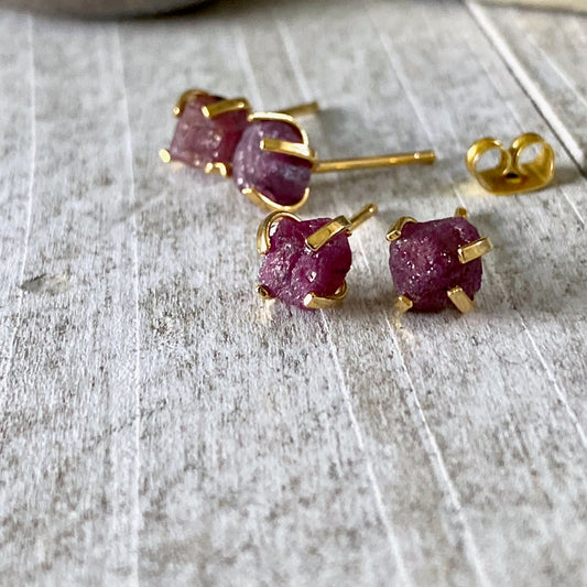 Raw Sapphire Prong Set Earrings – 14k Gold Plated, Natural Gemstone Studs