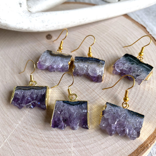 Rectangular Purple Druzy Statement Ring – Electroplated in 14k Gold, Bold & Unique Gemstone Jewelry