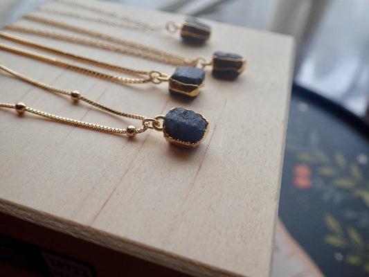 Serapis Raw Sapphire Pendant Necklace, Dainty Blue Gemstone Necklace, September Birthstone Jewelry