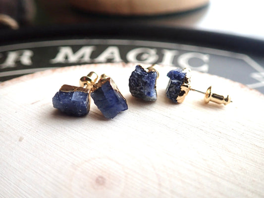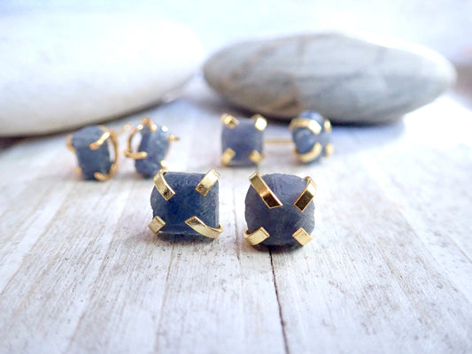 Sapphire Mojave Stud Earrings, Blue Jade Earrings ,September Birthstone, Blue Gemstone Studs, Sapphire Jewelry, Gemstone Bar Earrings Gold