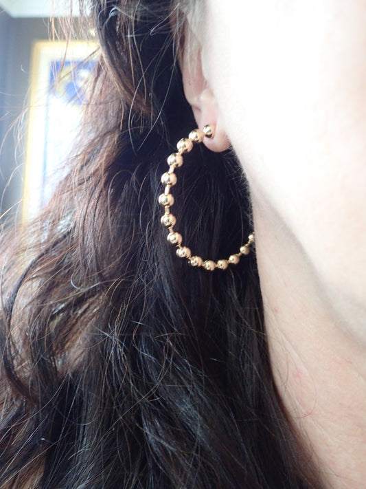 Beaded Hoop Earrings | Large Hoops | 14K Gold Plated | Hypo-Allergenic Post