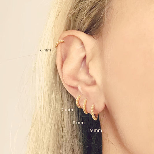 Beaded Gold Huggie Hoop Earrings – 18k Gold Over Sterling Silver, Tiny Everyday Hoops in 6mm–9mm Sizes