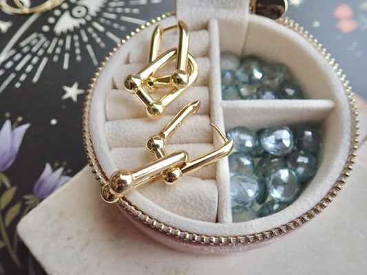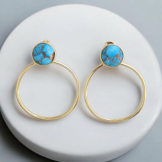 Turquoise Hoop Earrings, Mojave Turquoise Earrings Gold, December Birthstone Gift, Gemstone Hoops, Boho Gemstone Jewelry, Medium Gold Hoops