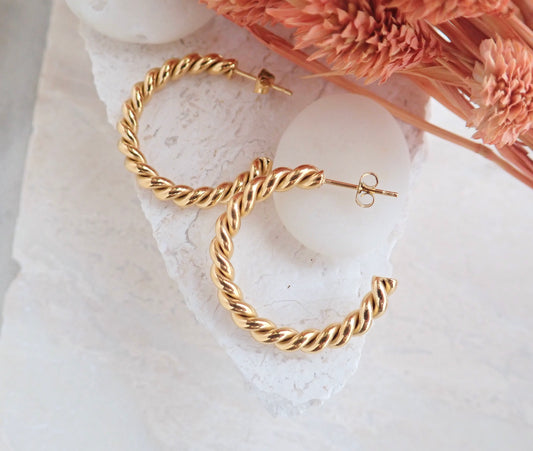 Twisted Gold Waterproof Hoops, Medium Rope Chain Hoops, No Tarnish Earrings, Everyday Minimal Jewelry,Simple Gold Hoop Earring,Gift for Her