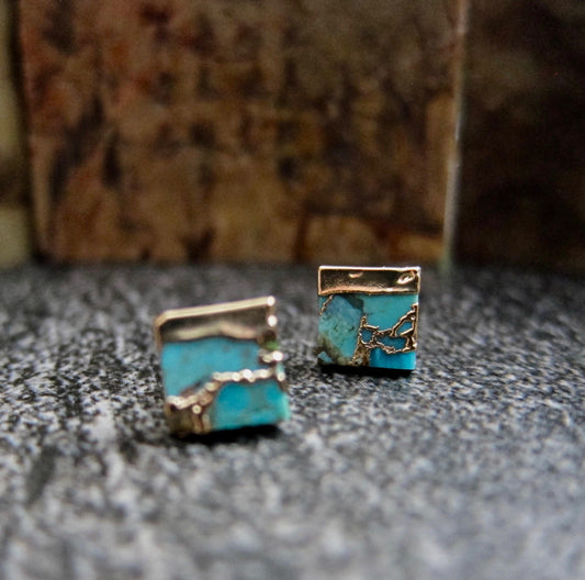 Turquoise Stud Earrings, Turquoise Earrings Gold, Gold Turquoise Studs, Raw Gemstone Earrings, Turquoise Jewelry,December Birthstone Gift