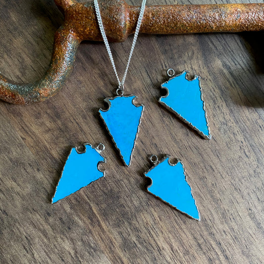 Turquoise Necklace Silver, Arrowhead Necklace,Stone Arrowhead Silver, Blue Stone Necklace,Raw Stone Necklace, Turquoise Pendant Necklace