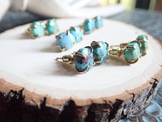 Turquoise Stud Earrings,Turquoise Earrings Gold,Gold Turquoise Studs,Raw Stone Earrings,Turquoise Jewelry,Boho Stud Earrings,Round Turquoise