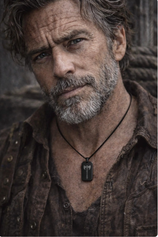 Viking Axe Men's Necklace, Black Cuban Chain with Norse Dog Tag Necklace, Gift for Him