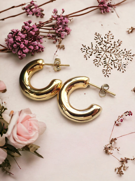 Chunky Gold Tube Hoop Earrings – Waterproof, Tarnish Proof, Hypoallergenic