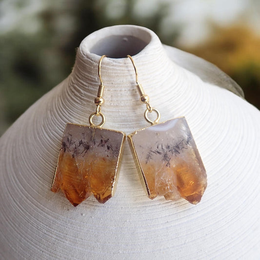 Citrine Slice Dangle Earrings -14K Gold Raw Gemstone Earrings, November Birthstone Jewelry, Boho Crystal Earrings