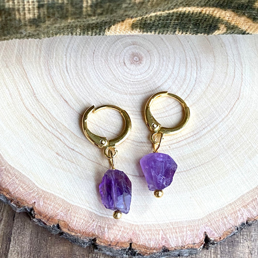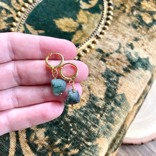 Raw Emerald Stud Earrings Electroplated in 14k Gold - NaturalGemstone Jewelry - May Birthstone Gift