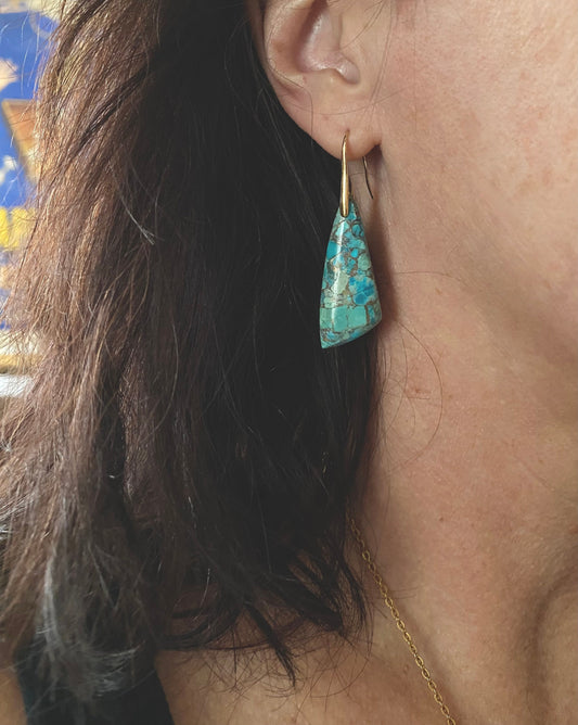 Turquoise Dangle Earrings Gold, Mojave Turquoise Earrings, Turquoise Jewelry,Large Gemstone Drop Earrings,December Birthstone Stone Earrings