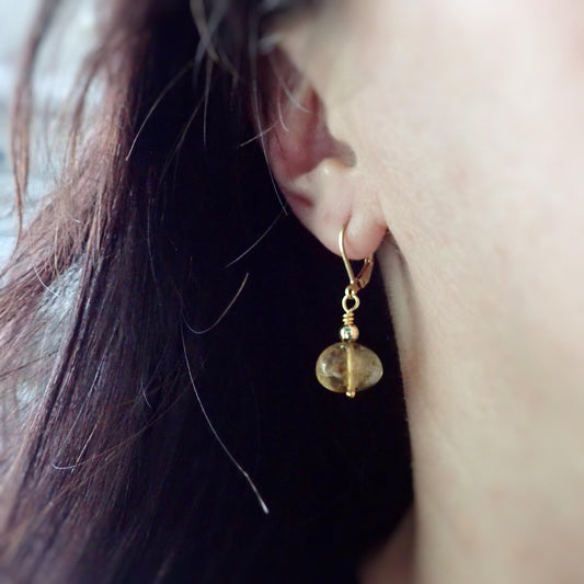 Tumbled Citrine Drop Earrings – Large Gemstones on 14k Gold Fill Leverback Earwigs, November Birthstone Jewelry