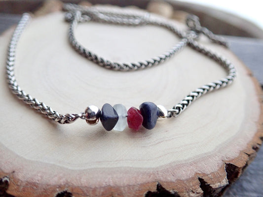 Custom Men’s Birthstone Necklace – Family Gemstones on Rugged Stainless Steel Wheat Chain