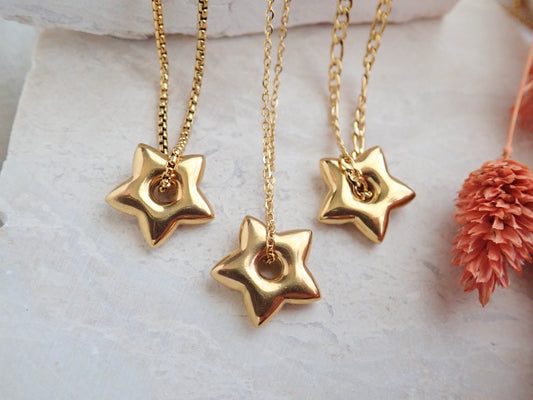 Puffy Star Necklace | Waterproof Jewelry | 18K Gold | PVD Stainless Steel | 3 Chain Choices