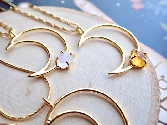 La Luna Bella Moon Necklace - Gold Crescent Moon Pendant with Birthstone