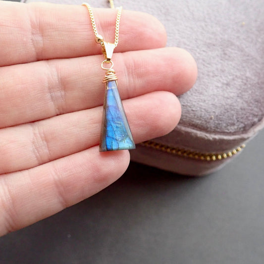 Minimalist Labradorite Necklace – Blue Flash Crystal Pendant in 14k Gold Fill on 18k Gold Fill Chain