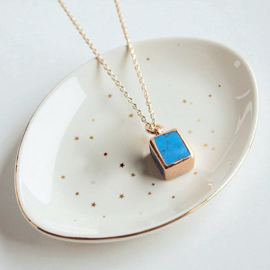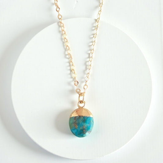 Dainty Turquoise Necklace • Genuine Gemstone Pendant • December Birthstone Gift for Her • 18kt Gold Filled Layering Jewelry