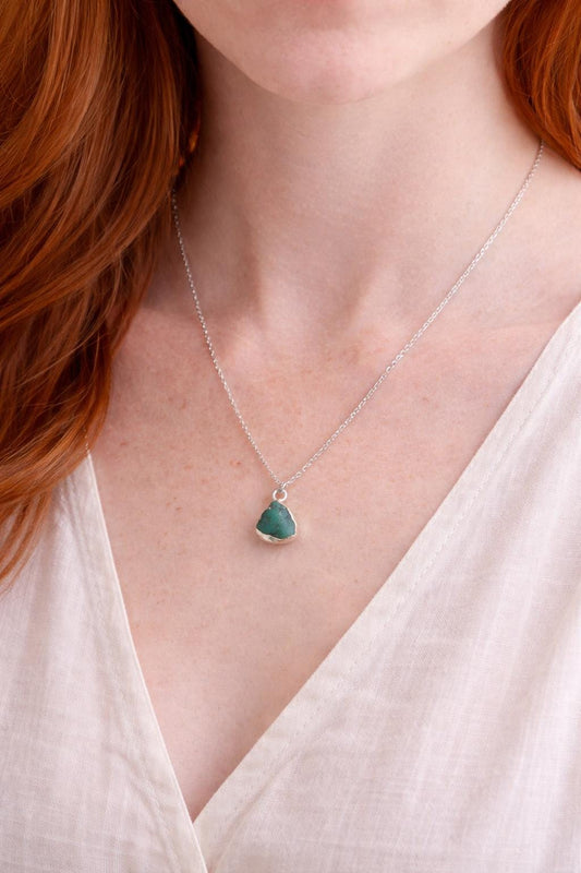 Raw Emerald Pendant Necklace Silver, Natural May Birthstone Jewelry, Dainty Green Gemstone Charm, Emerald Jewelry, Gift for her