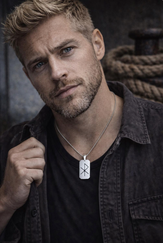 Men’s Stainless Steel Dog Tag Necklace – Gebo Wunjo Love Rune Engraved Pendant with Cuban Chain – Viking Gift of Love Jewelry