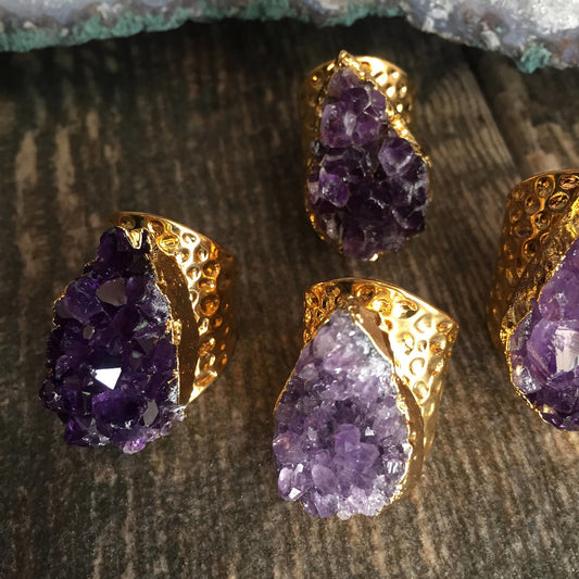 Open Moonstone Gemstone Ring Gold, Moonstone Jewelry, Gold Crystal Cocktail Ring, Adjustable Statement Ring for Women, June Birthstone Ring